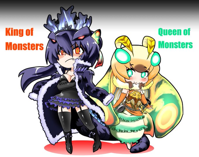 ট ইট র 歌知紅 怪獣擬人化注意 長らくお待たせした 待ってた Vsモスラ 固有名 朝日 とバトラ 固有名 夕月 の立ち絵 朝日は実はマント部分が破けて翅模様描くのが難しくなったから黒一色に すみません すみません